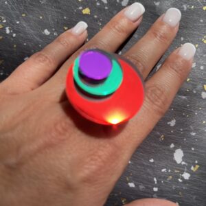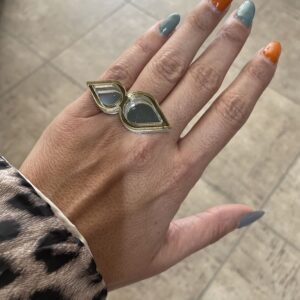 Το απόλυτο statement δαχτυλίδι MAJESTIC εμπνευσμένο από fashion style περιοδικά σε μία σταθερή ακρυλική βάση (μη ρυθμιζόμενη) αποτελεί την τέλεια επιλογή για εκθαμβωτικές εμφανίσεις.