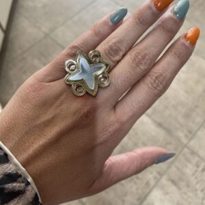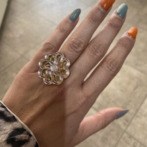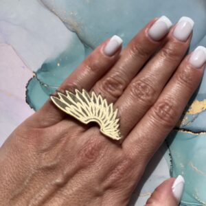 Σε ασημένια βάση και χρυσή επιφάνεια, δίνει μια αίσθηση δροσιάς με ιδιαίτερα στοιχεία ουράνιας έλξης. Στολίζει υπέροχα το χέρι σας και σίγουρα τραβάει την προσοχή με την δυναμικότητα του.